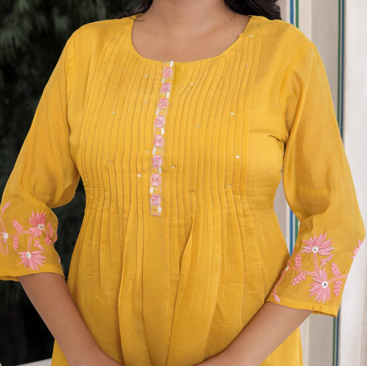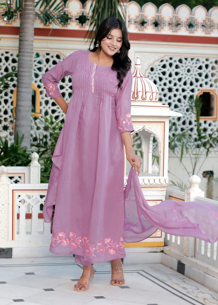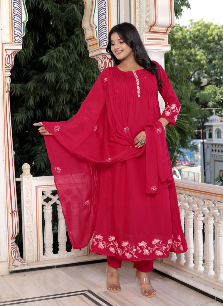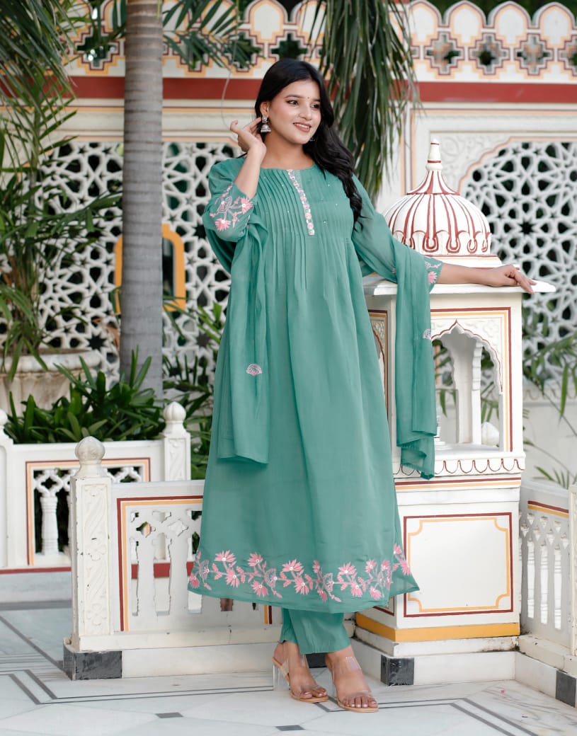 Pure cotton chanderi 3 piece embroidery suit set
