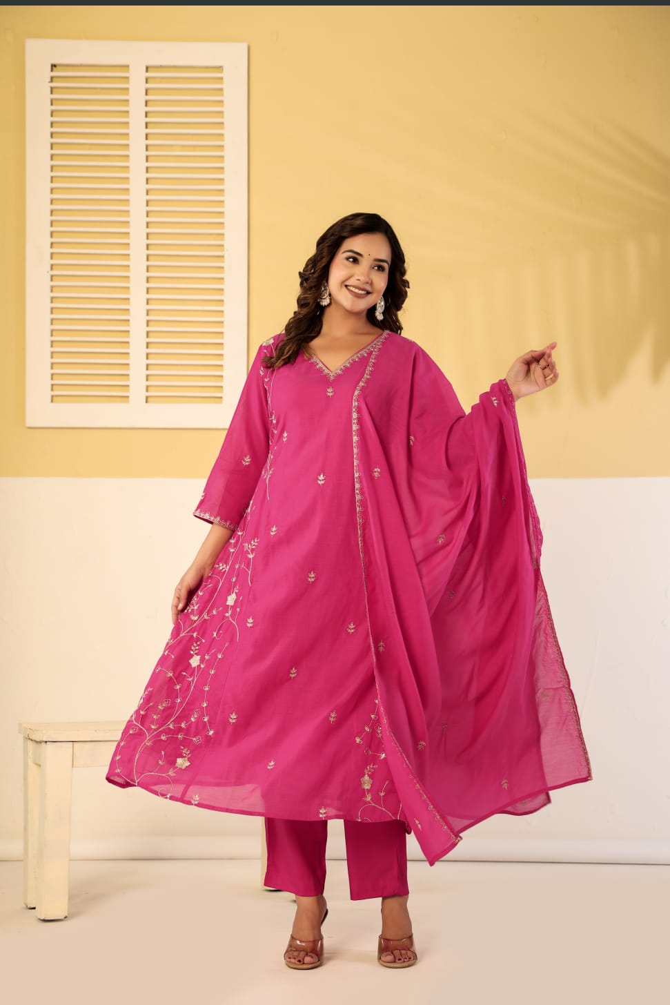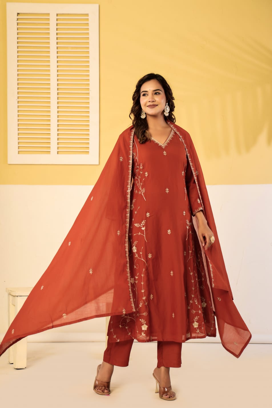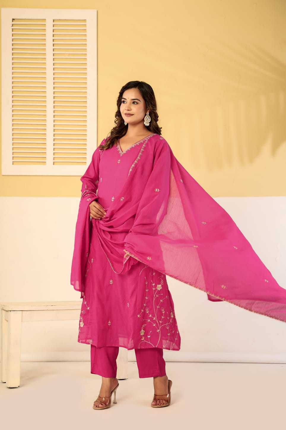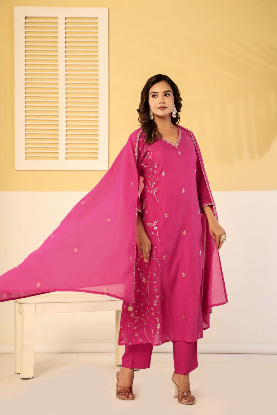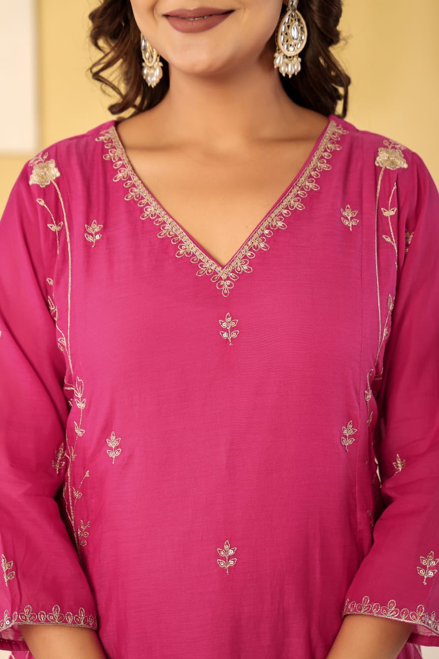 Pure mul chanderi zari work 3 piece suit set