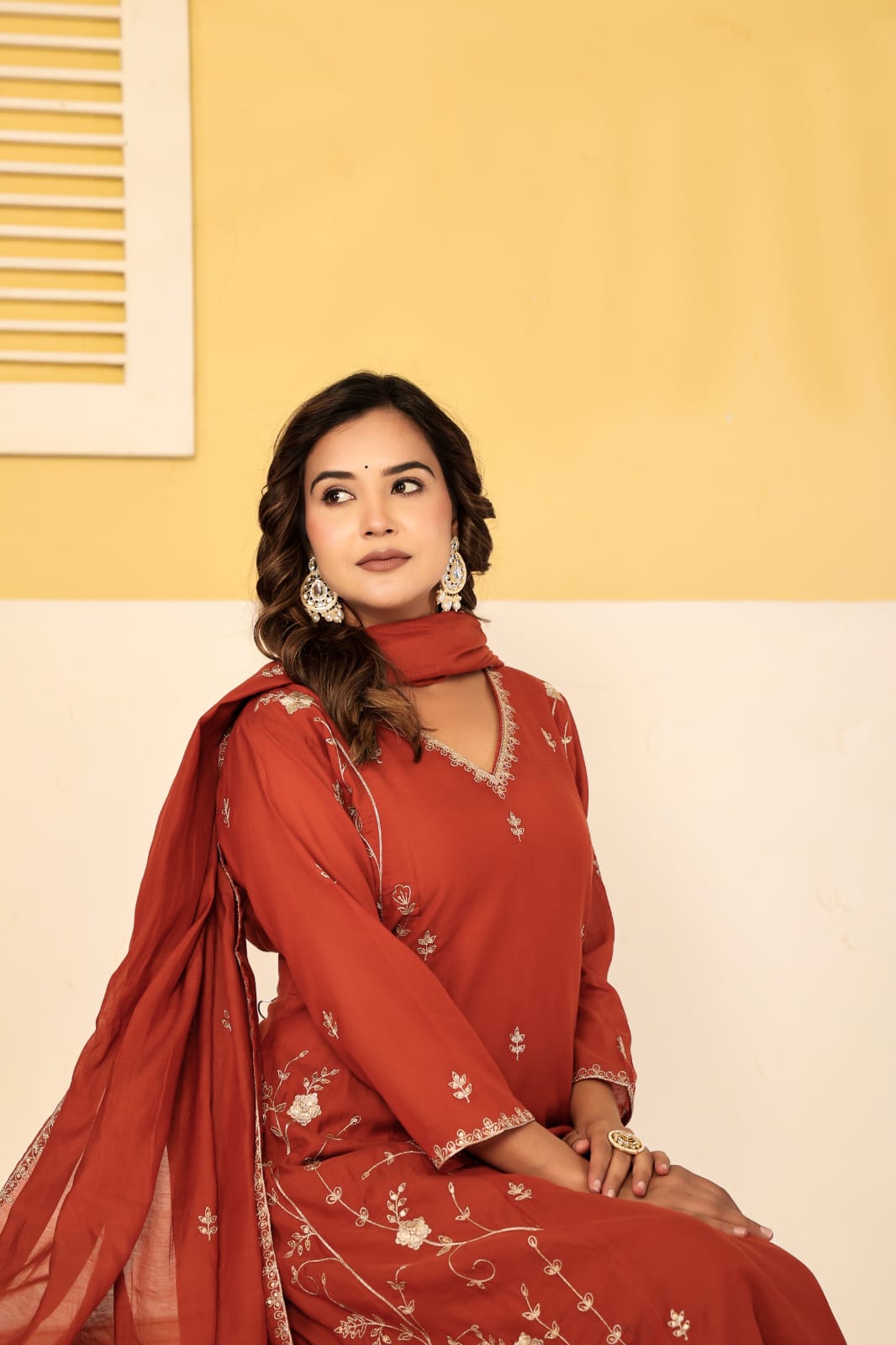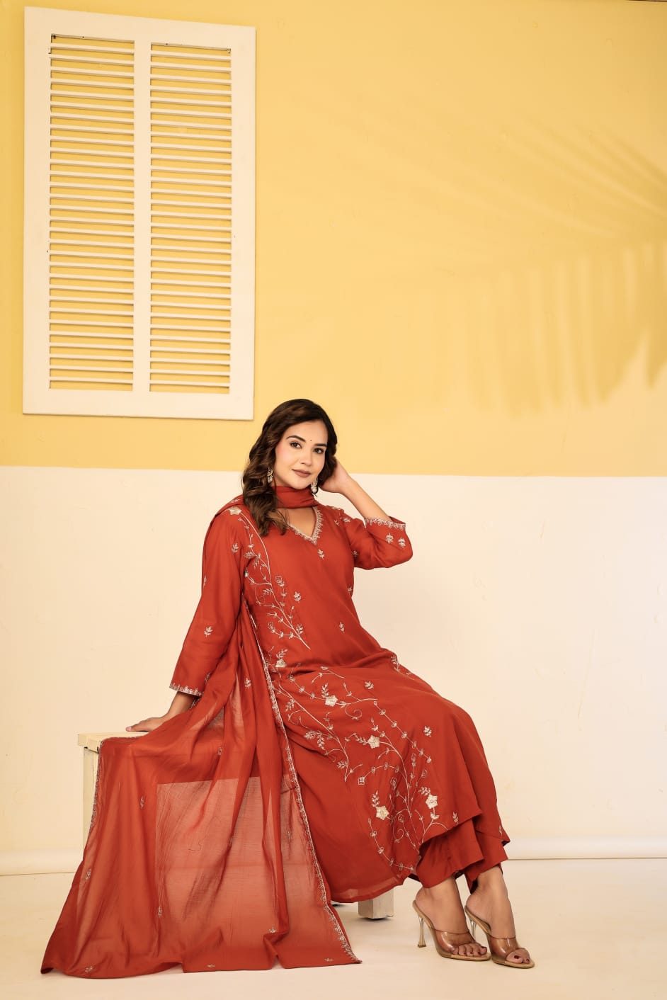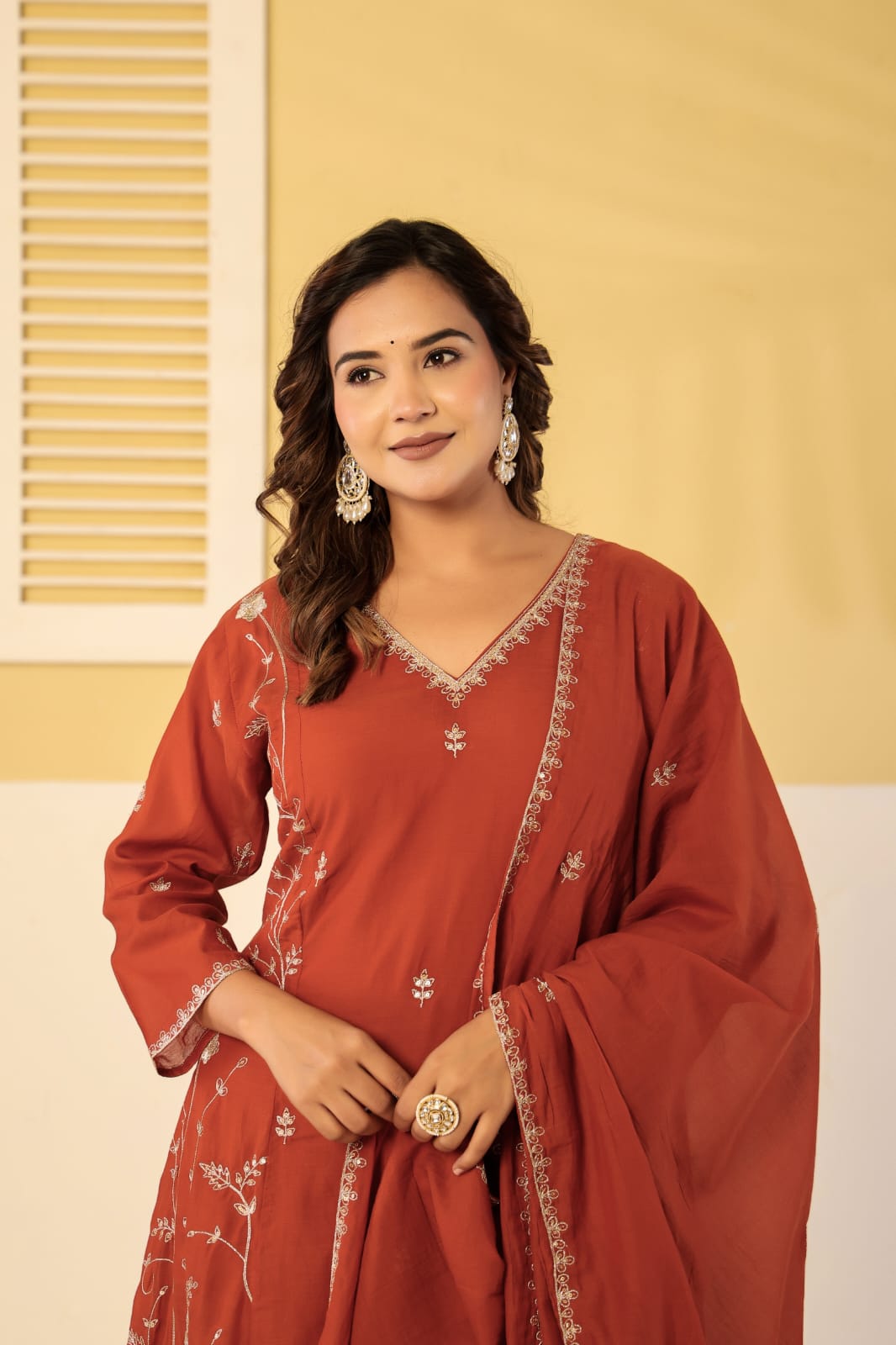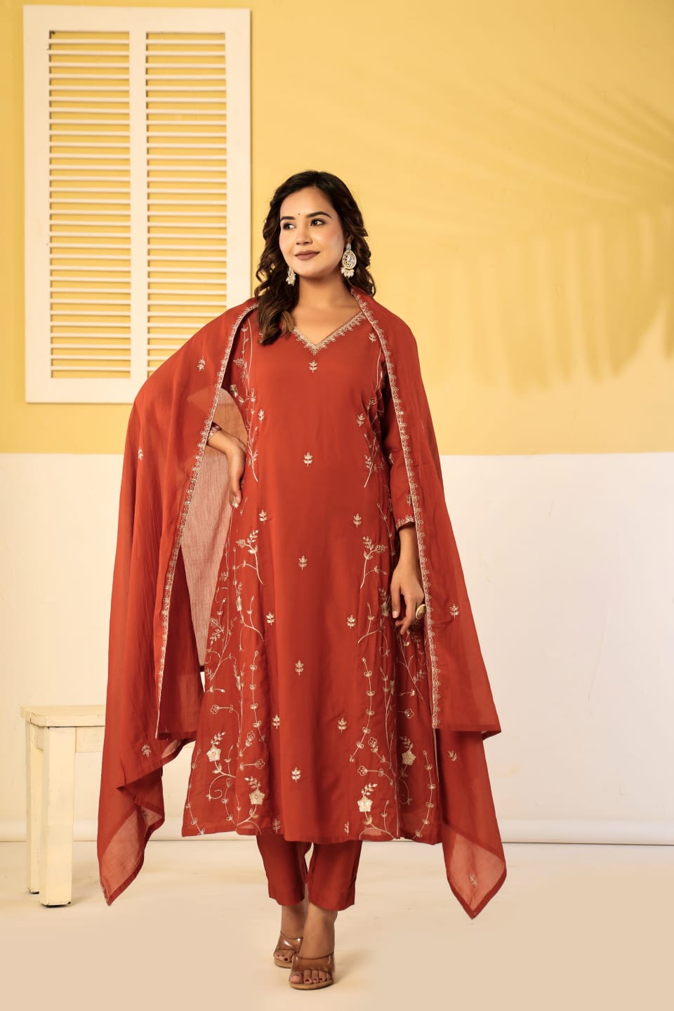 Pure mul chanderi zari work 3 piece suit set